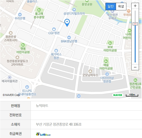 로또 명당 9위는 부산 기장군 정관중앙로 48,106호에 위치한 뉴빅마트 입니다.
