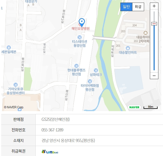 로또 명당 8위는 경남 양산시 웅산대로 955에 위치한 GS25편의점 양산혜인점입니다. 이런 정말이지 우리집앞에는 왜 이런 명당 편의점이 없는것인가요!