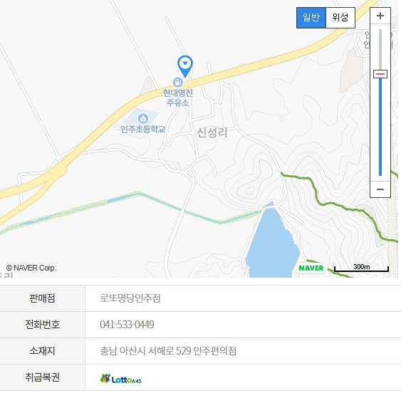 로또 명당 6위는 충남 아산시 서혜로 529 인주편의점에 위치한 로또명당 인주점입니다.