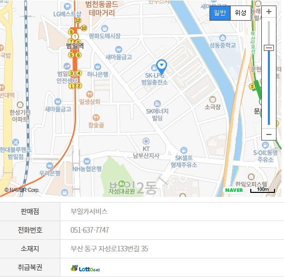 로또 명당 2위는 부산 동구 자성로 133번길 35에 위치한 부일카서비스 입니다. 이 명당 역시 로또 좀 해본 사람들은 잘 아는 곳입니다. 34회라는 1등 당첨자가 나왔고 이 명당 역시 2등도 자주 나오는 로또명당 입니다. 이 곳도 1위인 스파 못지않게 줄이 어머어마하게 길다고 합니다.